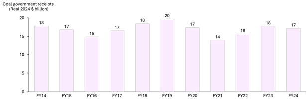 Estimated total government revenue from coal, FY14 to FY24, Real 2024 $ billion