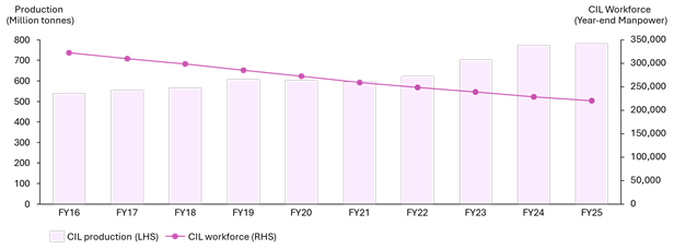 CIL production and workforce, FY16 to FY25