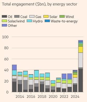 ⚡ Energy engagement was the largest category at $94b, and more than doubled from 2024.