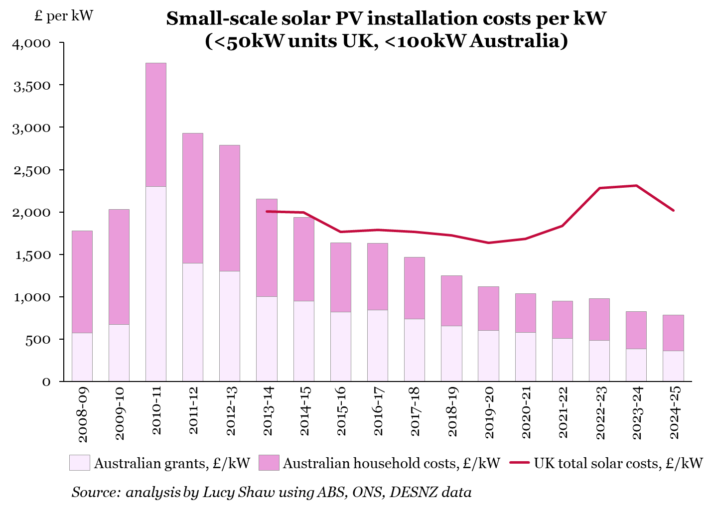 UK rooftop solar costs 2.6x more to install than in Australia. The Warm Homes Plan's £15b investment is welcome, but the government should get more value for money.