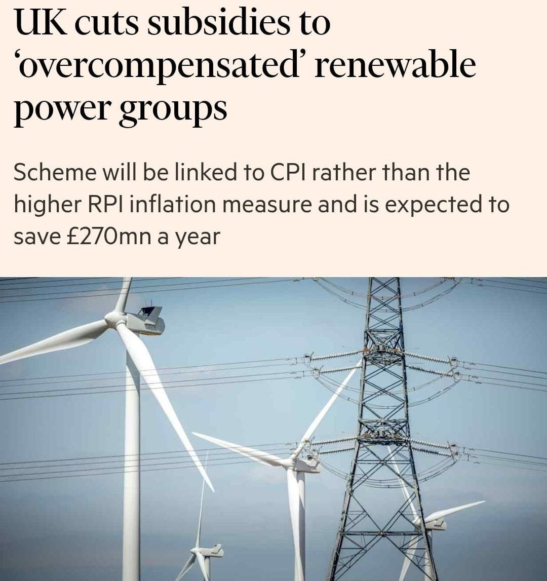 30% of the UK's electricity is subsidised* and rises with the 'retail price index'. By switching to CPI, the government saves ~90-120 bps of annual price increases**. Should investors be upset?