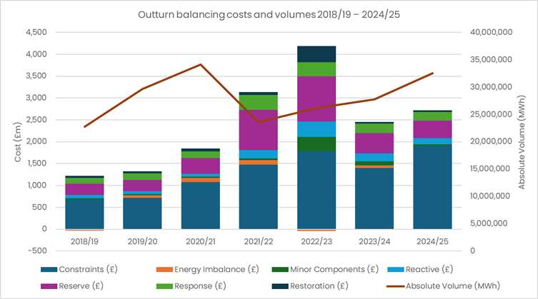 NESO’s historic balancing costs and volumes: system constraints make up the majority of cost