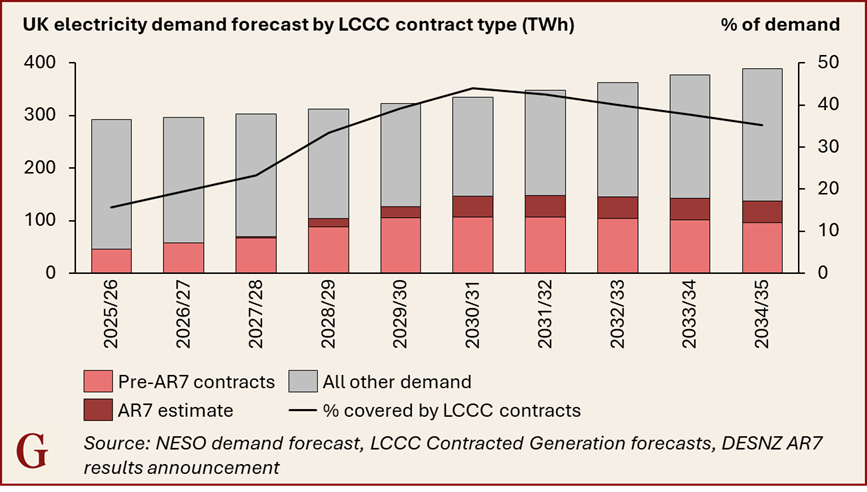 [xviii] Using the LCCC estimate of contracted supply from AR 1 to 6 and bespoke contracts, and author’s estimate of supply from the AR7 round based on assumed capacity factors.