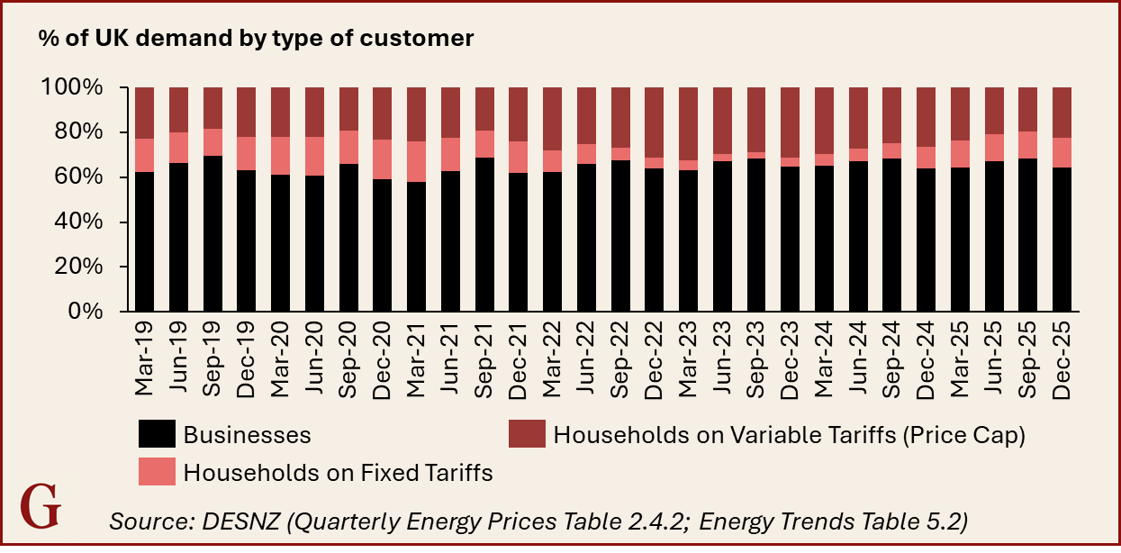 [xv] DESNZ Quarterly Prices Table 2.4.2, assuming the share of household customers on fixed prices is applied to demand.